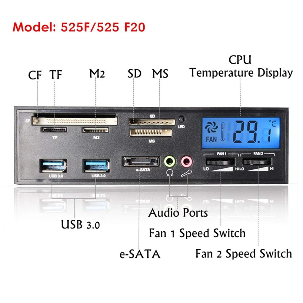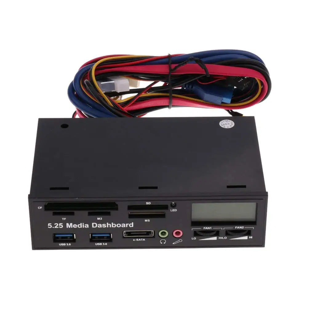 Comprar 5.25 \"Multi USB 3.0 Hub Leitor de Cartão SD MS CF TF M2 Fan Controlador Com Display LCD Frontal PC painel de Mídia Dashboard ESATA Áudio Baratas Online Preço.