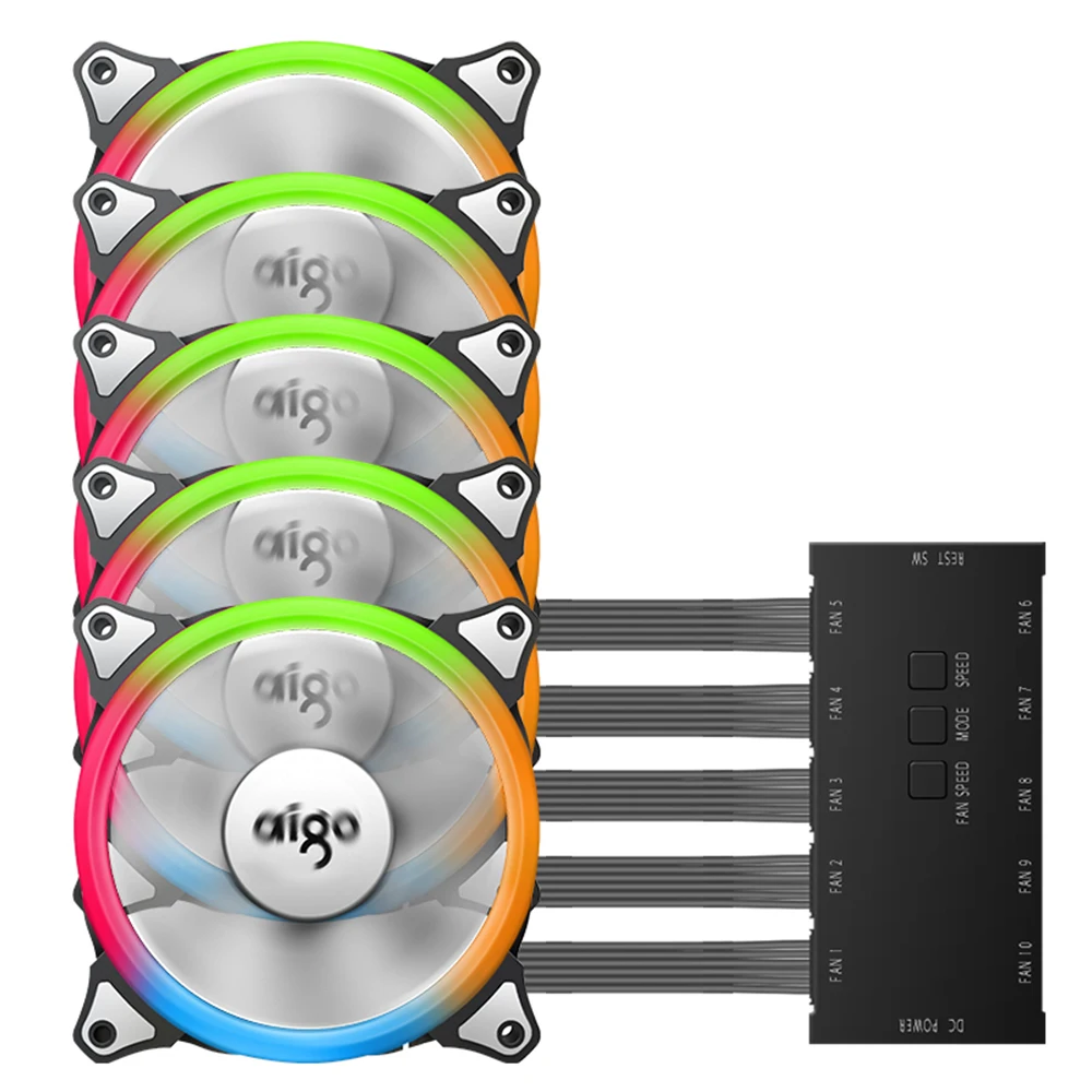 Comprar Aigo C5 5 pacote Caso PC Computador Cooler Ventilador de Refrigeração 120mm RGB LED Aurora Iridescência Baixo Ruído Alta fluxo de ar Ajustável Cor Baratas Online Preço.