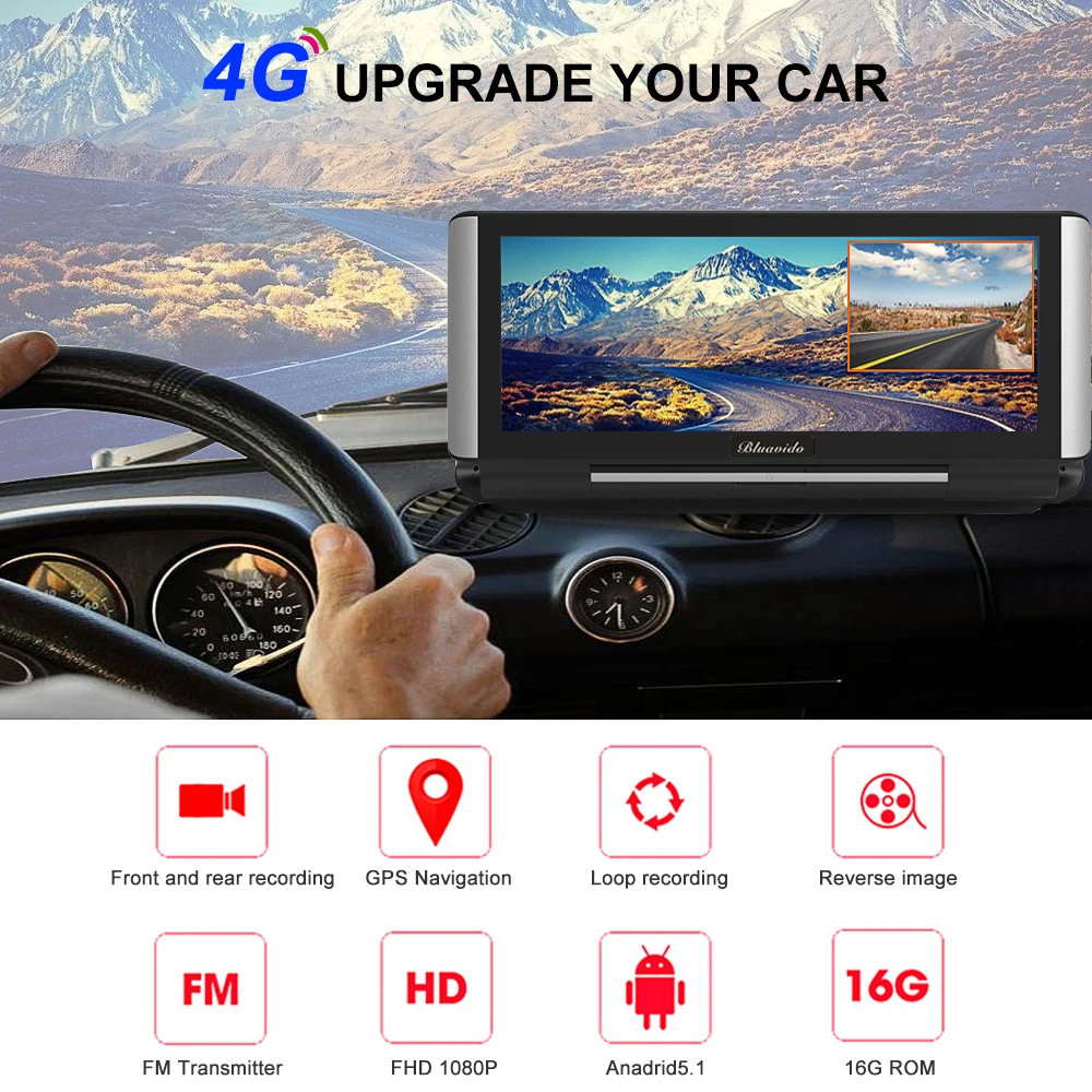 Comprar Bluavido 6.86 Polegada 4g GPS Câmera DVR Carro FHD 1080 p Android ADAS de Navegação Traço Cam Gravador de Vídeo Do Carro dual Lente Reverter imagem Baratas Online Preço.