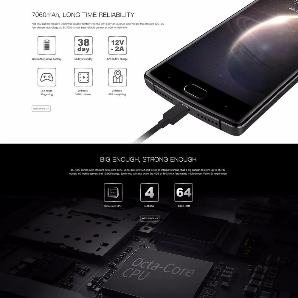 . Melhor LTE 4g BL7000 DOOGEE Smartphone 4 gb + 64 gb 13MP Câmera 7060 mah 5.5 Celular Android 7.0 octa Core 1.5 ghz 1920*1080 Do Telefone Moible Barato Online Preço.