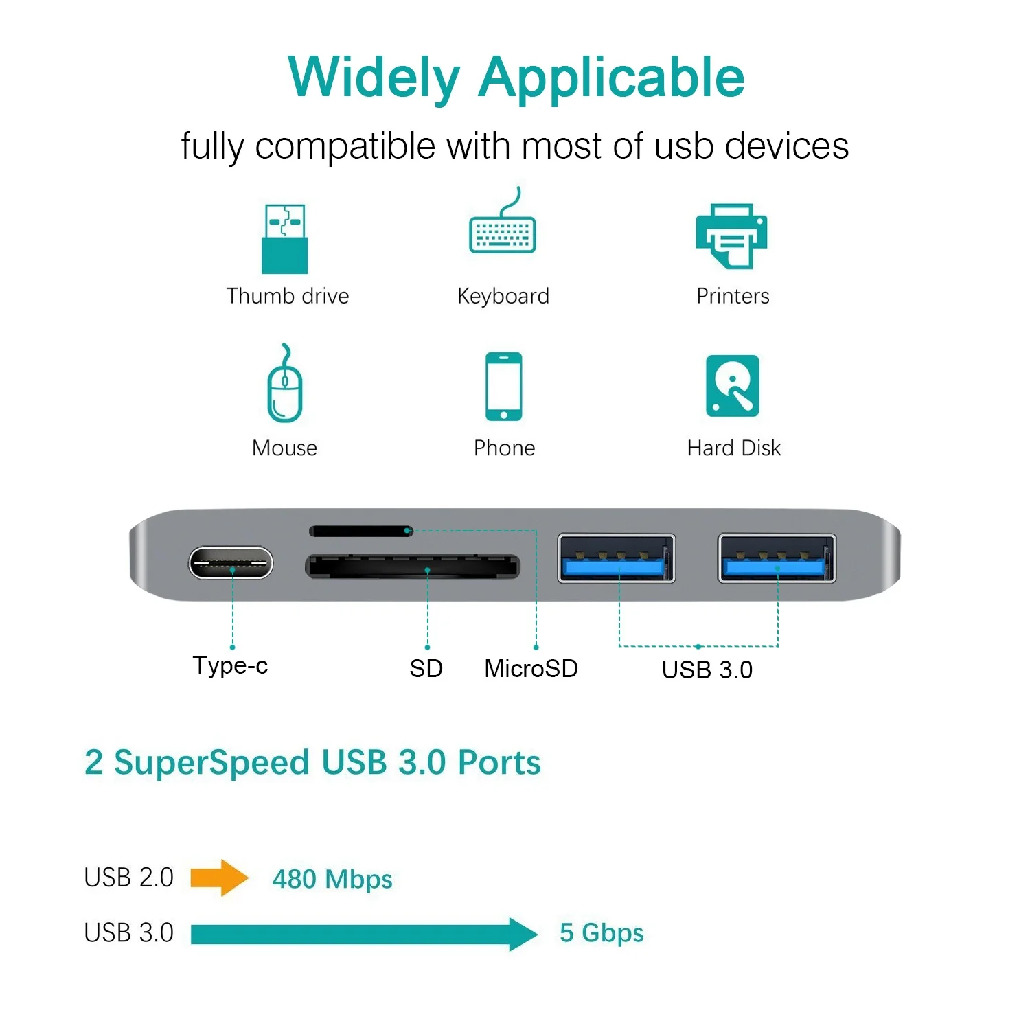 Comprar 5 NA Entrega 1 Tipo C Hub USB com Poder USB C 2 Portas USB 3.0 e SD Micro SD leitor de Cartão de TF para o Ar MacBook Pro 3.1 HUB USB Baratas Online Preço.