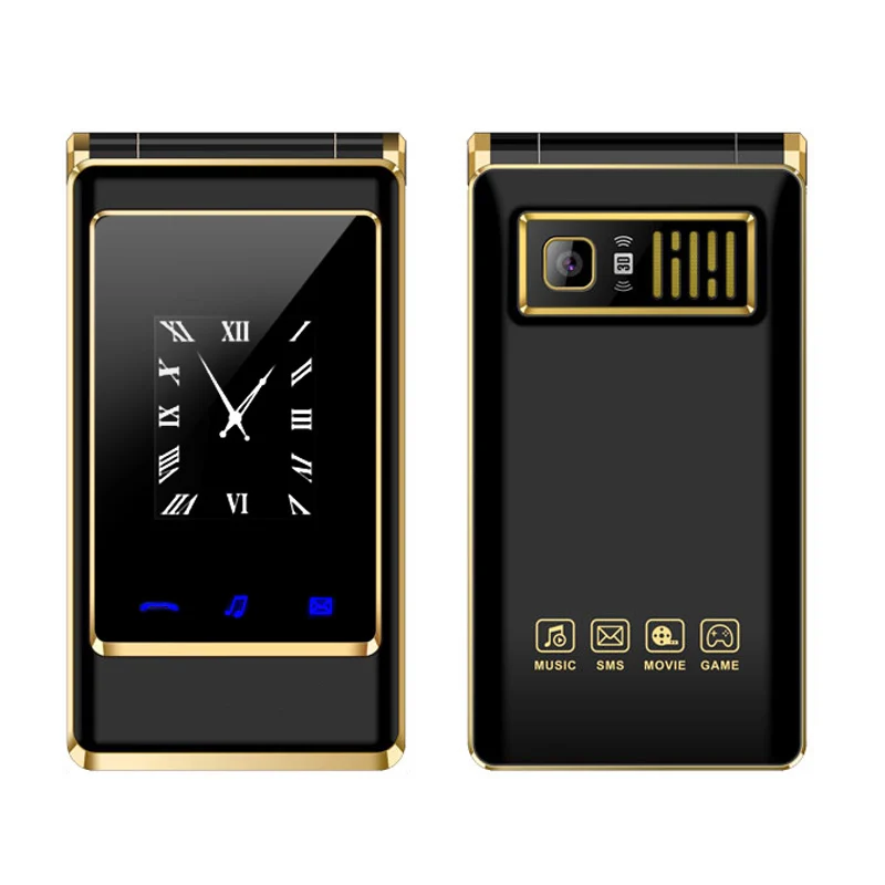 Comprar Flip do telefone 3.0 de polegada Dupla Tela dual SIM touch screen MP3 MP4 FM vibrar sênior do telefone móvel para o velho pessoas P084 Baratas Online Preço.