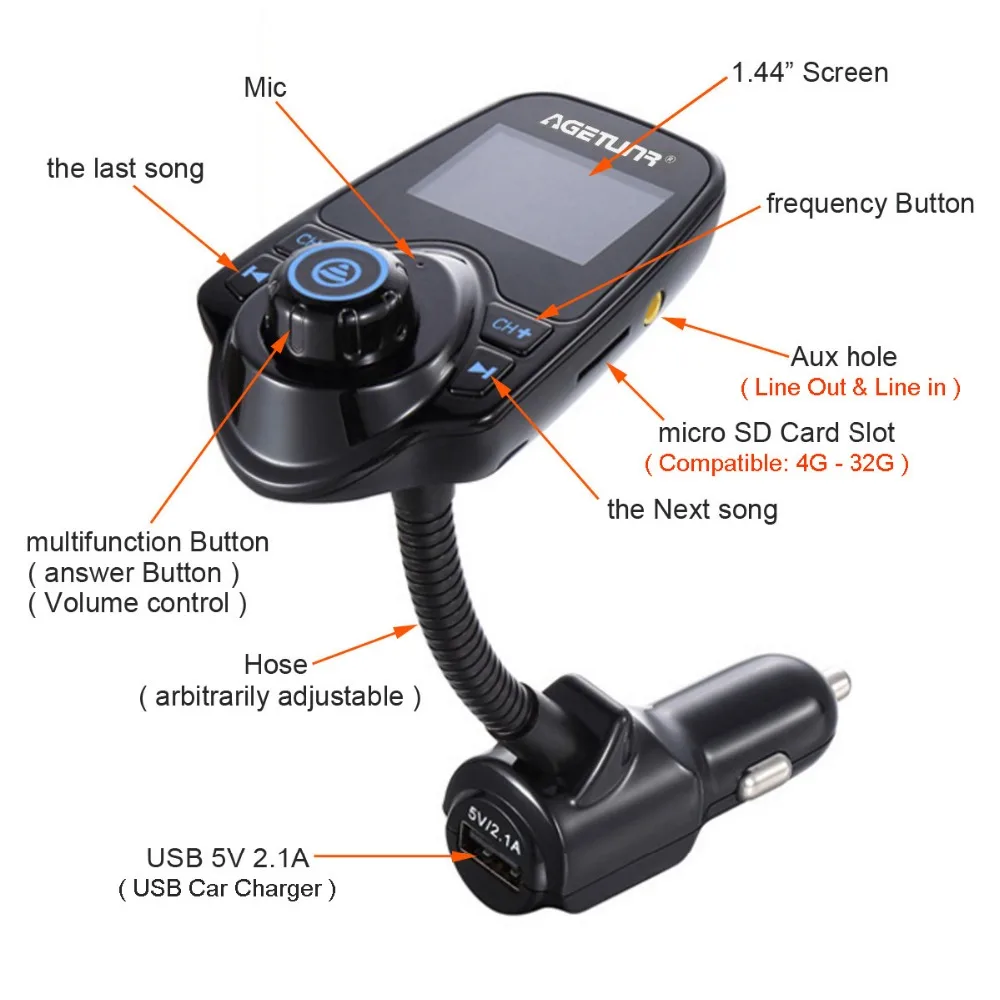 Comprar Kit Mãos Livres Bluetooth Carro Transmissor FM Conjunto AGETUNR MP3 Music Player 5 v 2.1A USB Car Charger Suporte para cartão Micro SD cartão 4g 32g Baratas Online Preço.