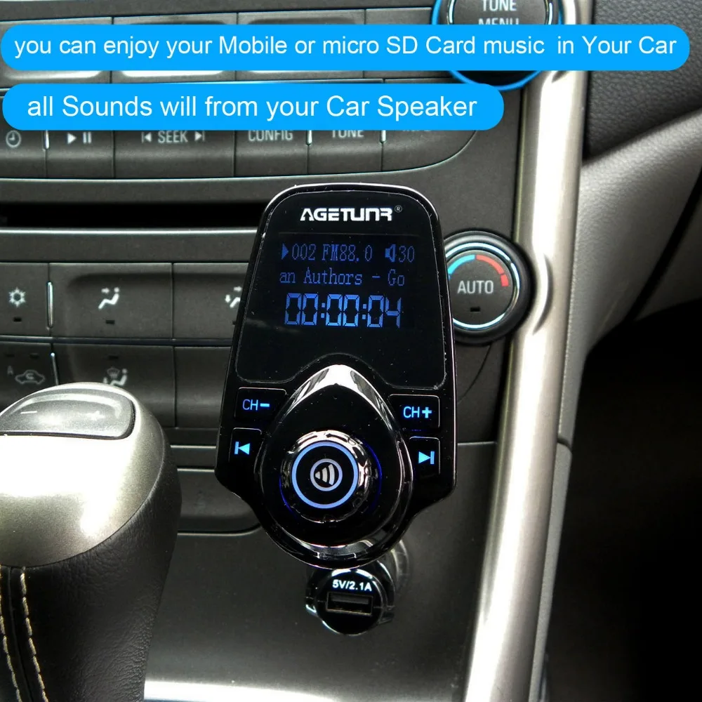 . Melhor Kit Mãos Livres Bluetooth Carro Transmissor FM Conjunto AGETUNR MP3 Music Player 5 v 2.1A USB Car Charger Suporte para cartão Micro SD cartão 4g 32g Barato Online Preço.