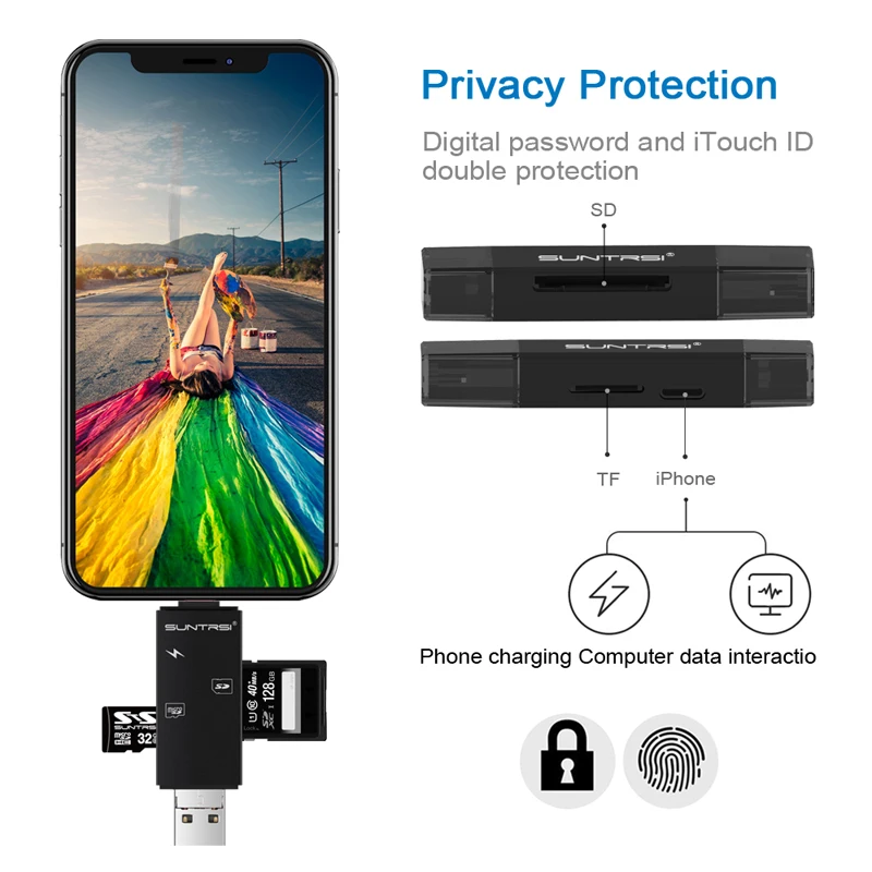 Comprar Suntrsi 6 em 1 Micro leitor de cartão sd Leitor de Cartão TF para o iphone 6 7 8 Micro SD leitor de cartão para o telefone inteligente De Carregamento Relâmpago Baratas Online Preço.