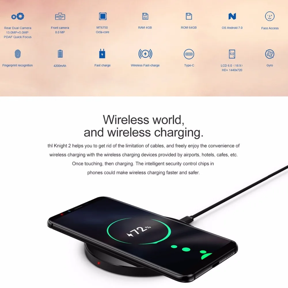 Comprar THL Cavaleiro 2 4 GB + 64 GB Face ID Smartphone 6.0 polegada Android 7.0 MTK6750 Octa Núcleo Dual SIM OTG Carga Sem Fio 4G LTE Móvel telefone Baratas Online Preço.