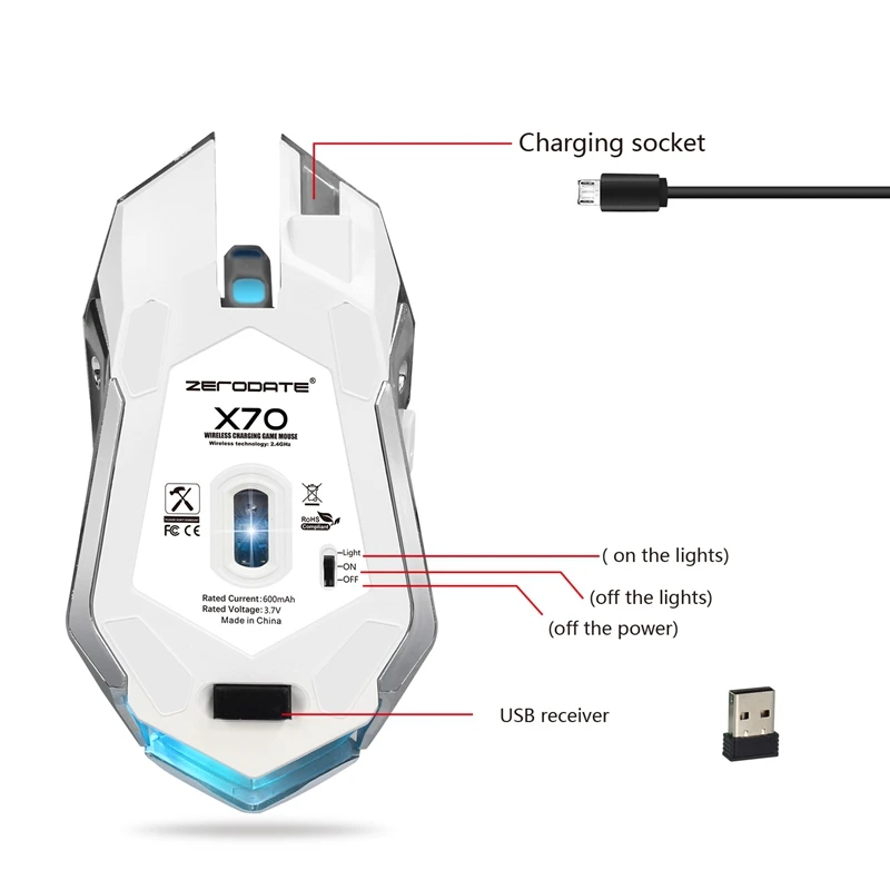 . Melhor 6 Botões ZERODATE 2.4 ghz Jogo Do Rato Sem Fio 2400 dpi Ergonomia Mouse Óptico 7 Cores LED Jogo Ratos Para PC laptop Gamer Barato Online Preço.