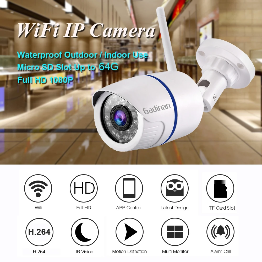 Comprar GADINAN HD 1080 p 720 p Câmera IP Sem Fio Movimento Detectado P2P RTSP Wi fi À Prova D Água Câmera Da Bala com 64g slot Para Cartão SD iCSee Baratas Online Preço