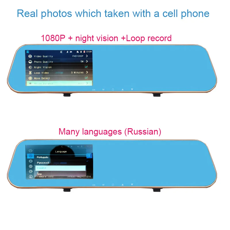 . Melhor Jansite 1080 p Dvr Do Carro Azul Espelho Retrovisor de Lente Dupla Câmera Do Carro duas câmeras registro de Loop Recorder Auto Registrator Camcorder Barato Online Preço.