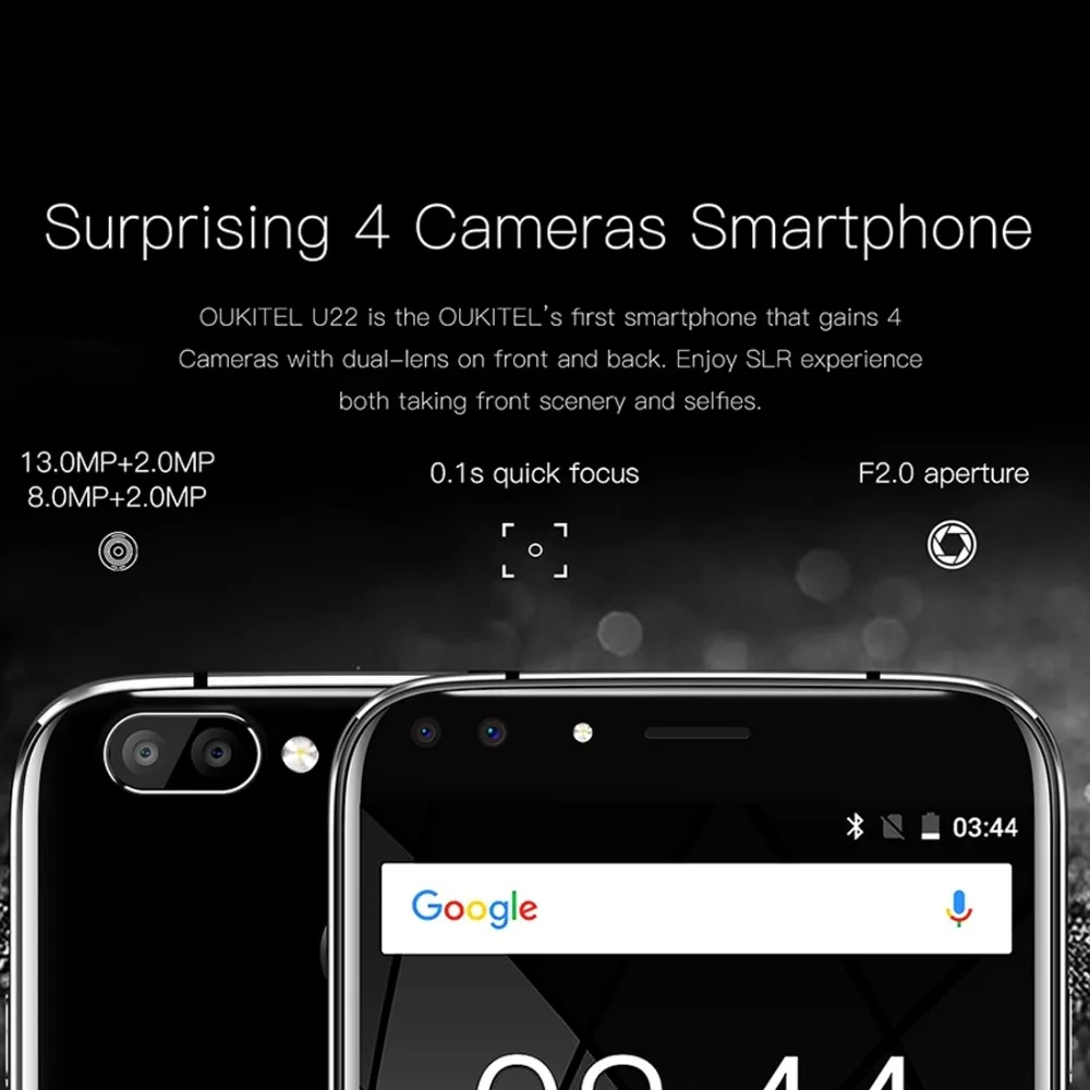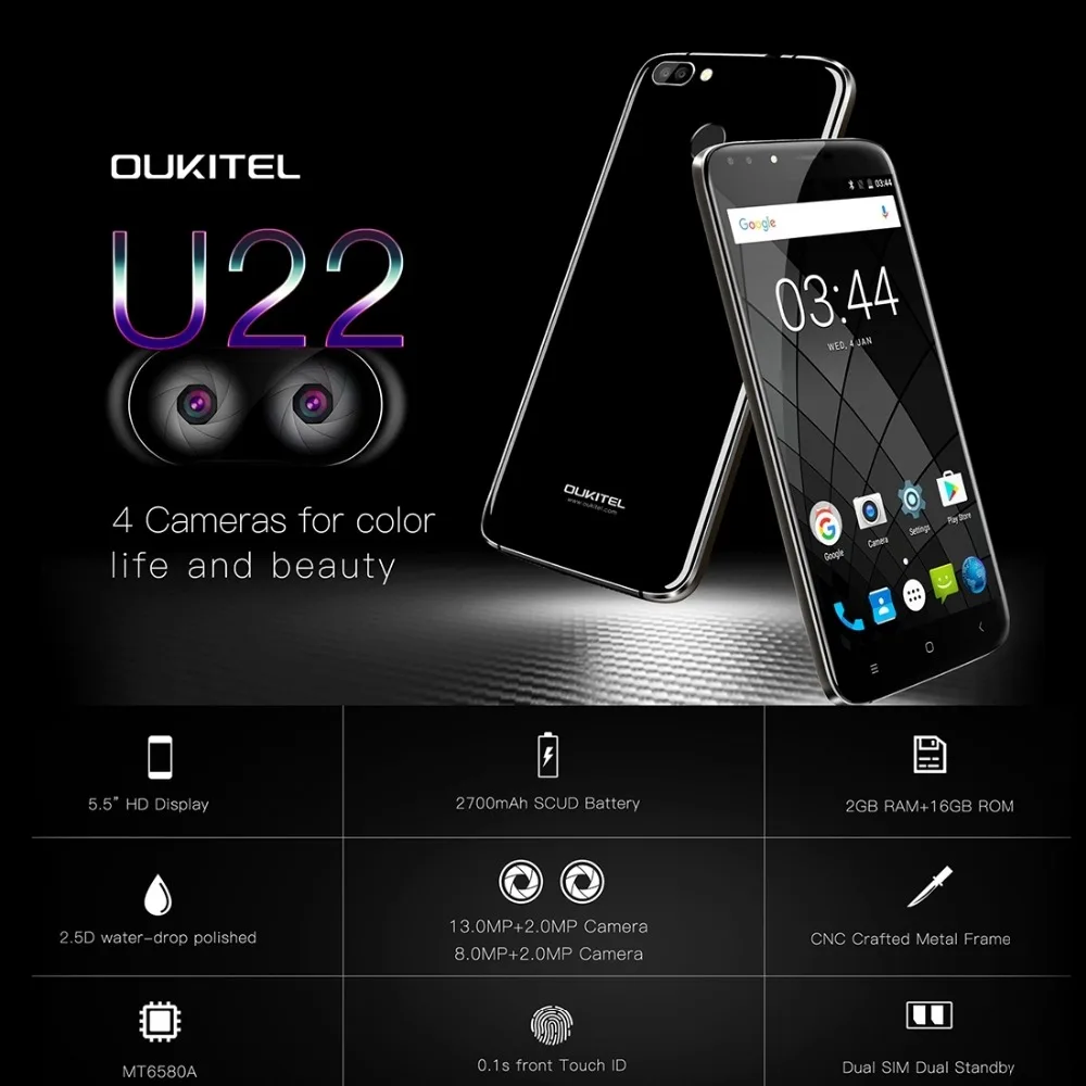 . Melhor Oukitel U22 2 MTK6850A Quad Core 1.3 ghz Smartphone Android 7.0g RAM 16g ROM 5.5 \"Telefone Móvel impressão digital ID de Toque OTA Celular Barato Online Preço.