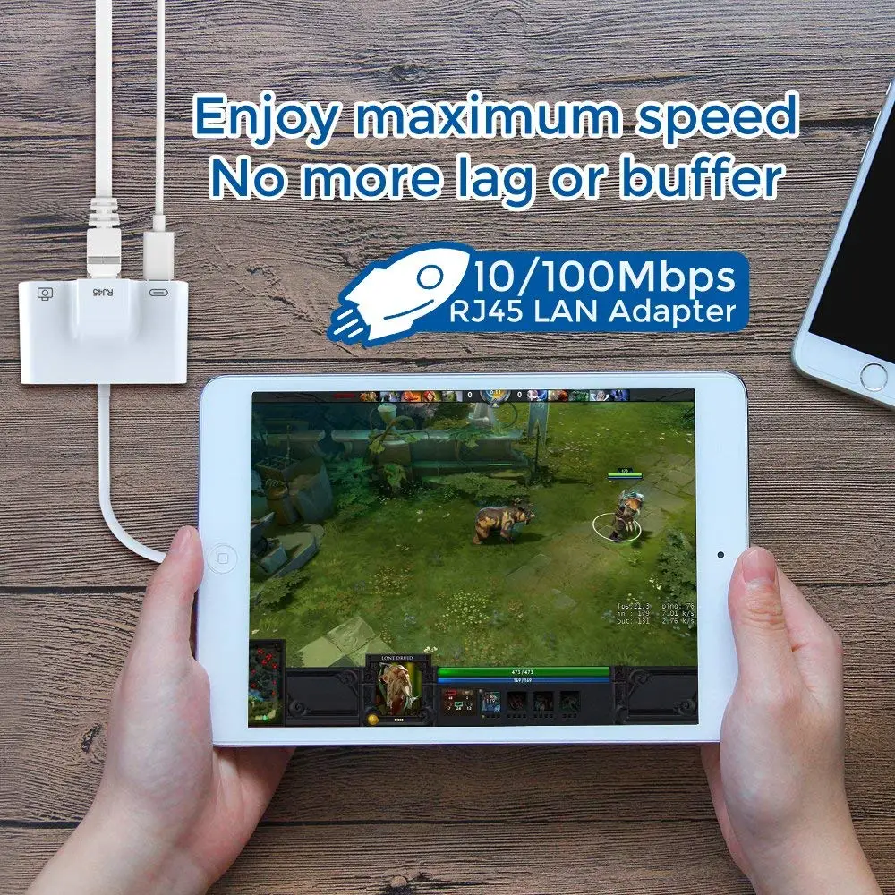. Melhor Adaptador para Lightning para RJ45 Ethernet LAN placa de Rede Com Fio para o iphone iPad todas as séries com o carregamento e USB 3 leitor câmera porta Barato Online Preço.