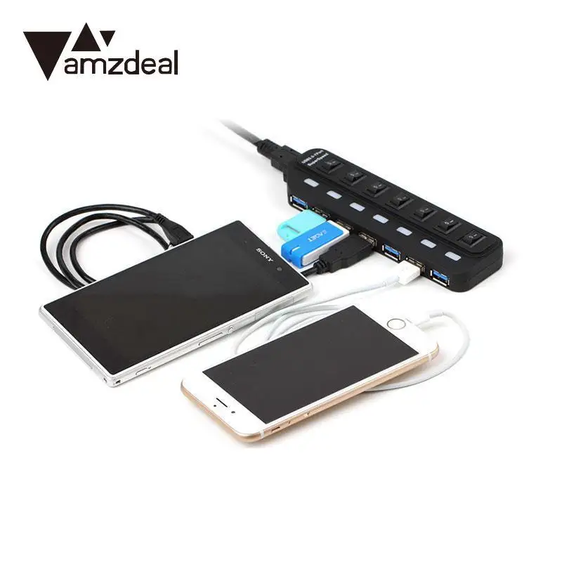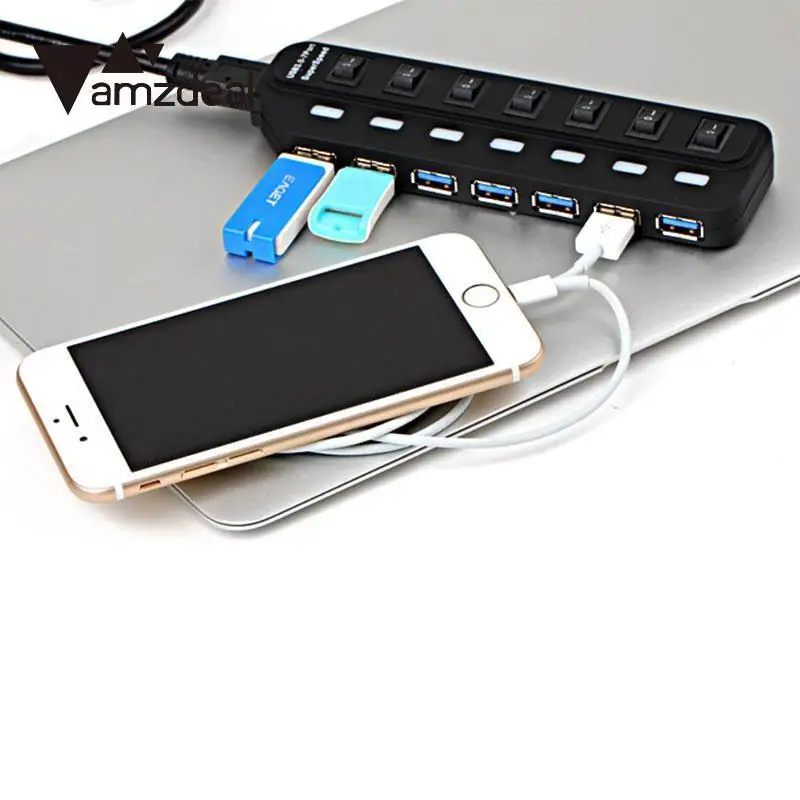 Comprar Amzdeal 7 Port HUB USB 3.0 Splitter Adaptador de 5 Gbps Hub Com On Off Switch Para PC Laptop Mac Desktop plug UE Baratas Online Preço