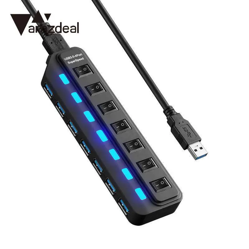 Comprar Amzdeal 7 Port HUB USB 3.0 Splitter Adaptador de 5 Gbps Hub Com On Off Switch Para PC Laptop Mac Desktop plug UE Baratas Online Preço.