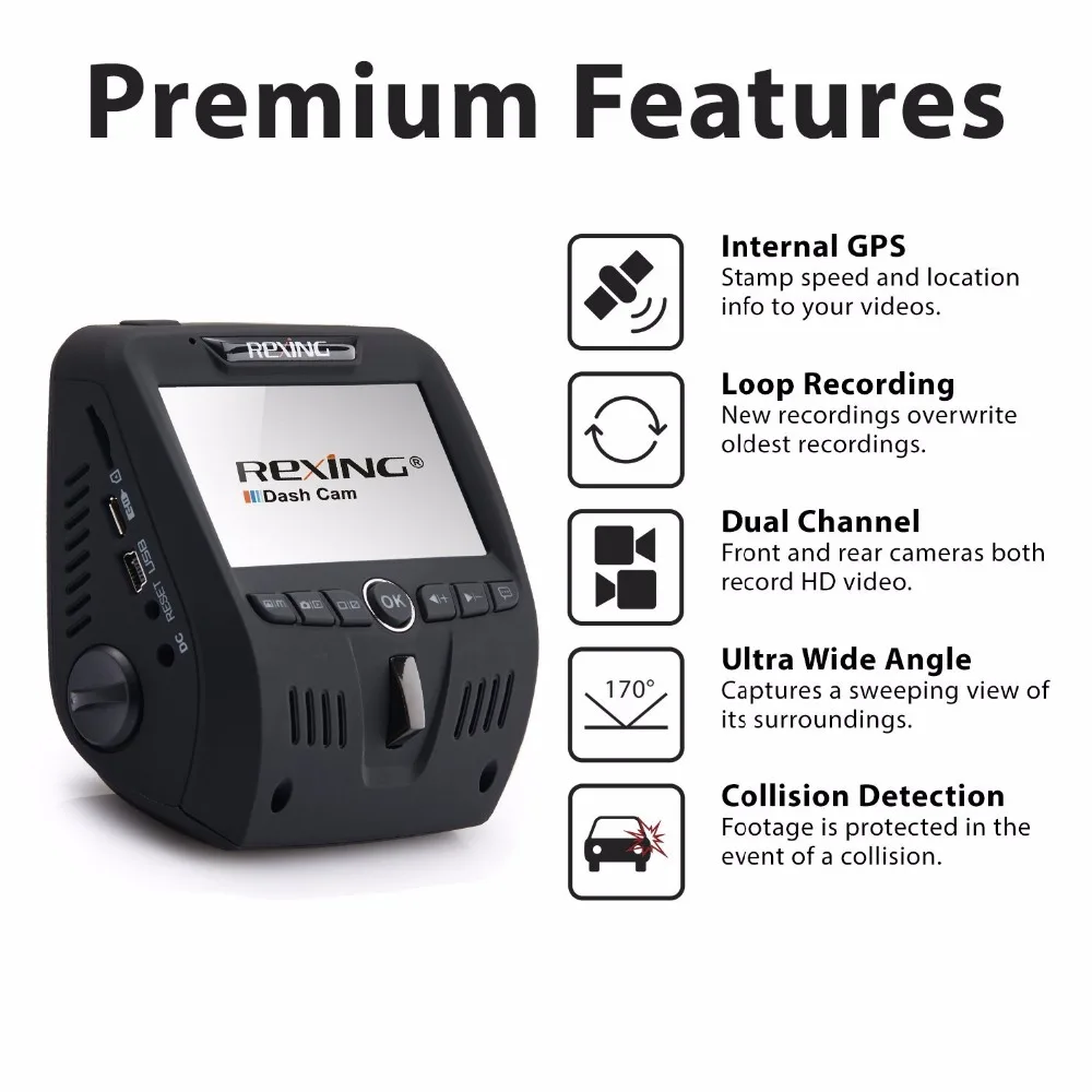 . Melhor Rexing V1LG, 1080 p + 720 p Frente Câmera Traseira Dupla, GPS de Carro, Carro Dvr, traço Cam, Amplo Ângulo, Visão Noturna Barato Online Preço.