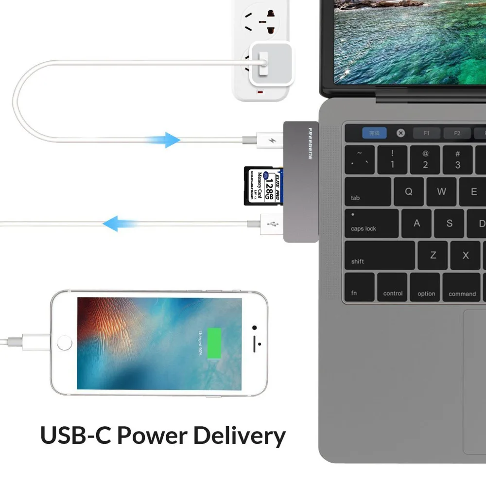 Comprar FREEGENE Tipo c HUB USB HUB C 4 em 1 Com USB 3.0 Micro SD Slot Para Cartão TF leitor Adaptador De Energia Para Macbook Pro 13 15 USB C PD Baratas Online Preço.