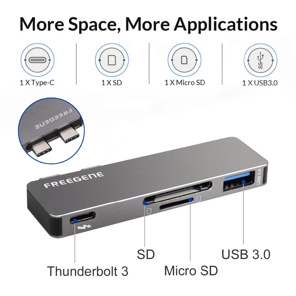 . Melhor FREEGENE Tipo c HUB USB HUB C 4 em 1 Com USB 3.0 Micro SD Slot Para Cartão TF leitor Adaptador De Energia Para Macbook Pro 13 15 USB C PD Barato Online Preço.