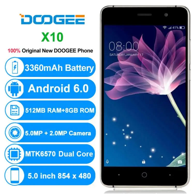 Comprar Presente livre DOOGEE X10 MT6570 Dual Core 5.0 \"IPS SmartPhone 512 mb RAM gb ROM Android 6.0 5MP 58 3360 mah GPS FM Telefone Móvel WCDMA Baratas Online Preço.