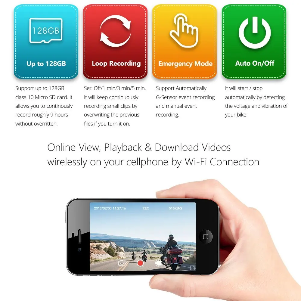 Comprar SYS 3.0 M2F WiFi Suporte Dual 1080 p DVR Motocicleta Motorbike Cam Traço Front Rear View Câmeras À Prova D Água, GPS track Baratas Online Preço