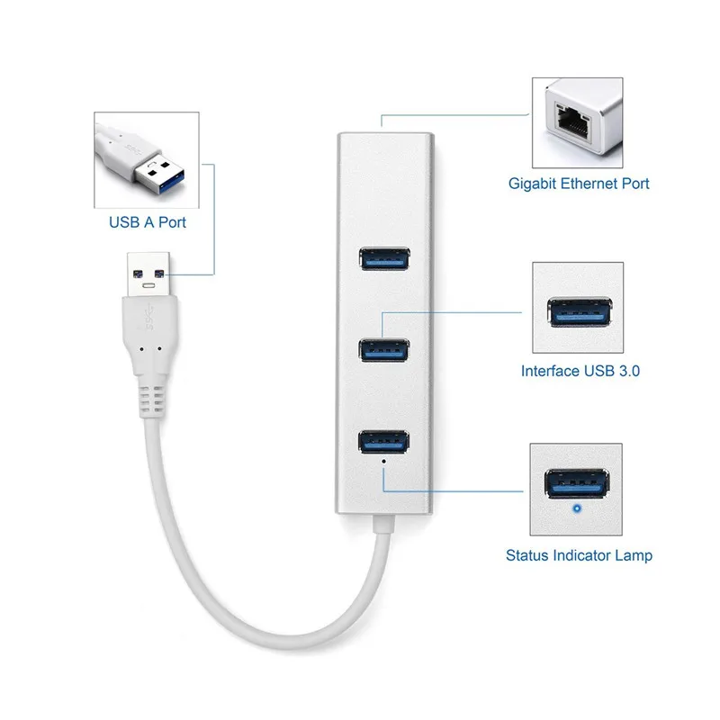 . Melhor BinFul Alumínio de Alta Velocidade 3 Portas USB 3.0 Hub 10 100 1000 100mbps Para RJ45 Gigabit Ethernet Adapter LAN Converter Para Windows Mac Barato Online Preço.