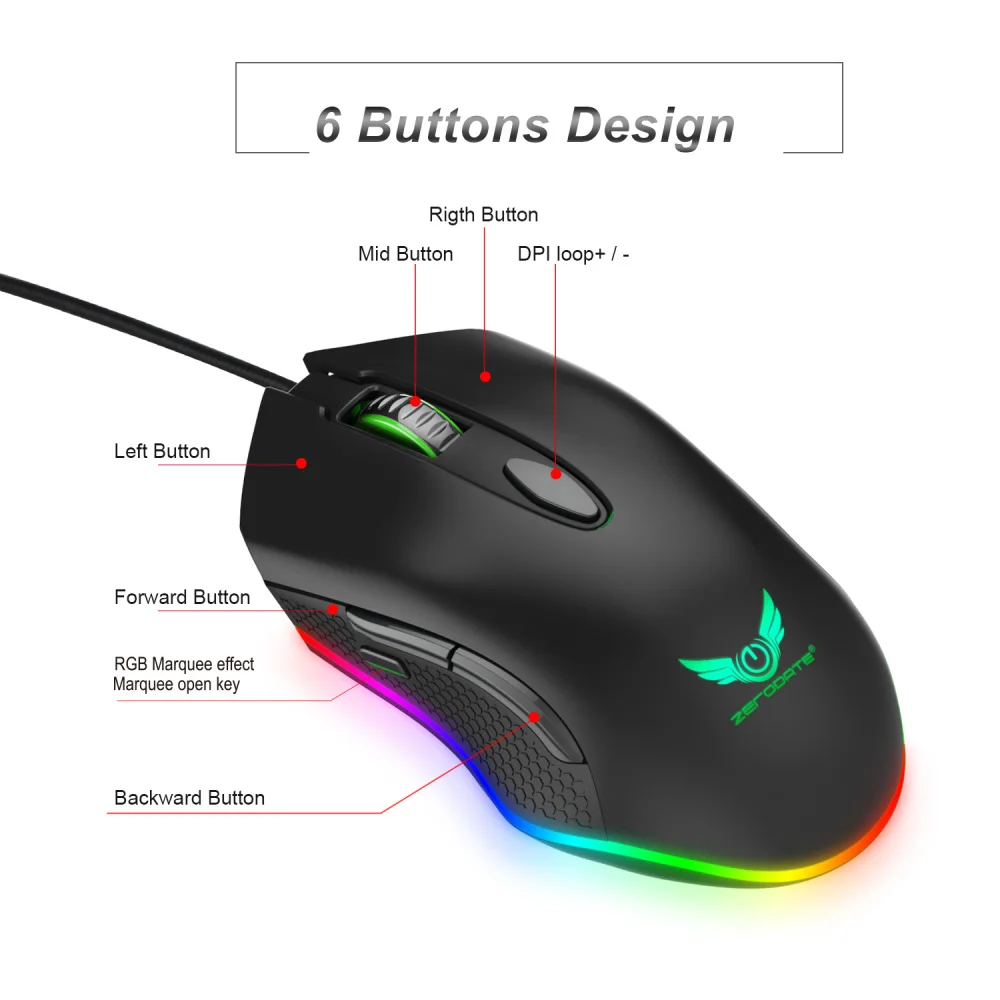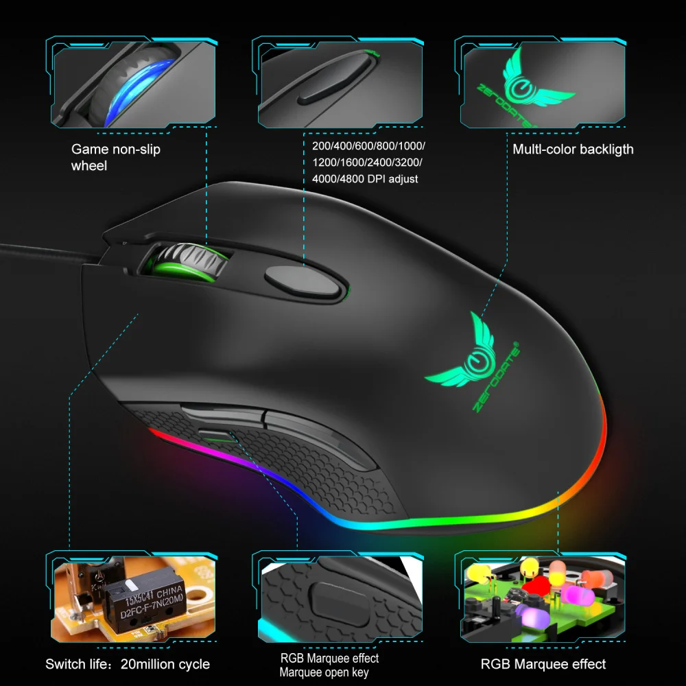 Comprar ZERODATE Programável RGB Retroiluminado Gaming Mouse 4800 DPI 6 Botões USB Mouse Óptico Gamer para PC Portátil Baratas Online Preço.