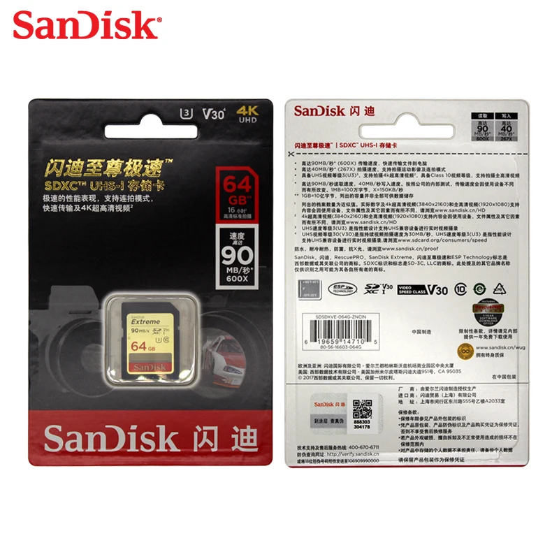 Comprar 100% Original SanDisk Extreme Sd Cartão de Memória SDXC UHS I 3 4 K C10 Class10 90 MB s 600X Alta Velocidade 64 GB 32 GB 16 GB 128 GB U3 cartão Baratas Online Preço.