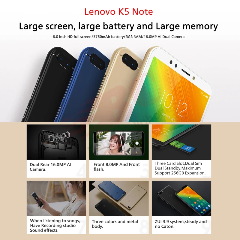 . Melhor Lenovo K5 Nota 4g SmartPhone 3 gb RAM + 32 gb ROM Dual Câmera Traseira 16MP Snapdragon 450 Octa Core OTG 3760 mah impressão digital GPS Barato Online Preço.