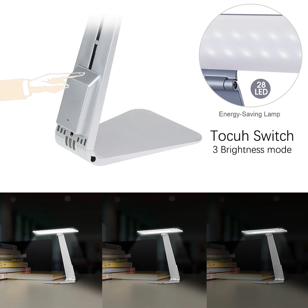 . Melhor Atualizado Dobrável Ultra fino Estilo Mac Modo de Escurecimento Interruptor de Toque Lâmpada de Mesa de Leitura Desk Lamp 3 Construído na Bateria Noite luz Barato Online Preço.