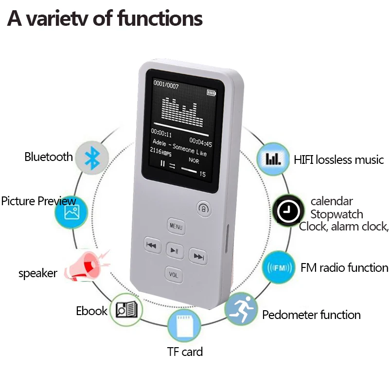 Comprar MP3 Player de Música Lossless HiFi Sem Fio Bluetooth MP3 Music Player 32 GB com Rádio FM Speaker ebook Suporta Cartão de Memória Baratas Online Preço.