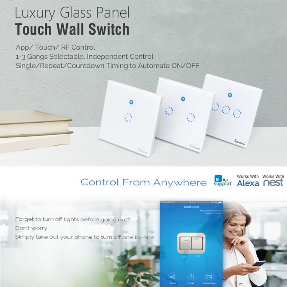 . Melhor Sonoff T1 Wi fi Inteligente RF APP Touch Control Wall Light Mudar 1 2 3 Gang 86 tipo REINO UNIDO Painel de Toque Interruptor de Luz de Parede Ninho de Alexa Barato Online Preço.