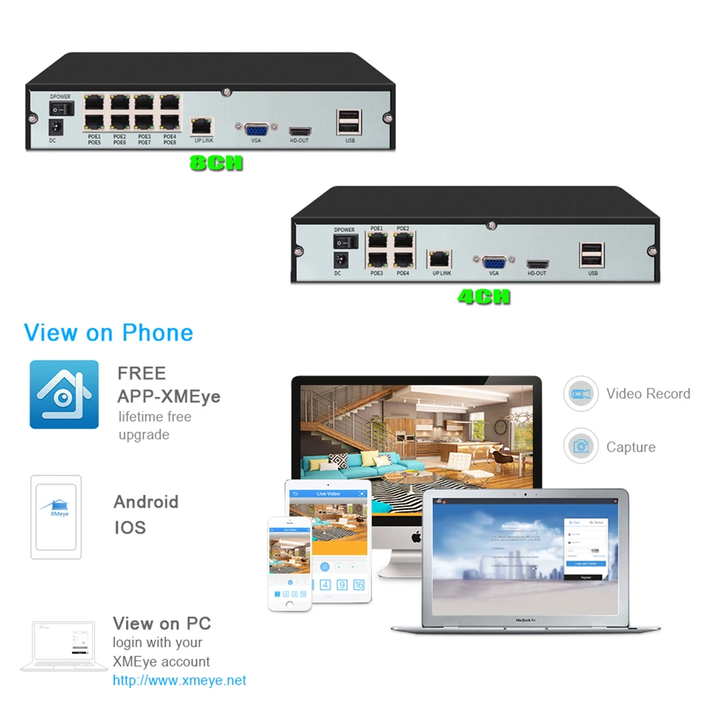 Comprar YiiSPO 4 CHPOE NVR 1080 p CCTV 48 v IEEE802.3af 8CH Segurança Gravador de Vídeo em Rede NVR POE Switch POE Interior h.264 ONVIF P2P XMEYE Baratas Online Preço