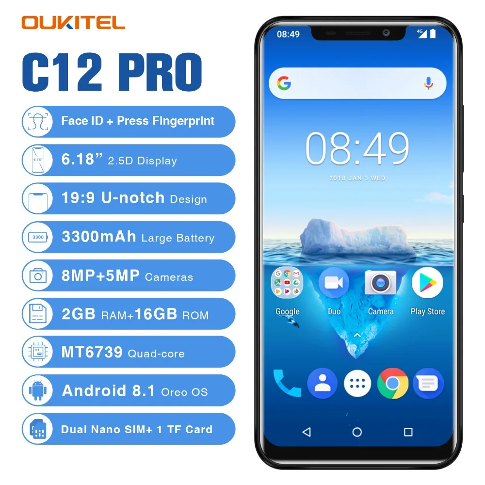 Comprar 4g OUKITEL C12 Pro 6.18 \"199 Smartphone Android 8.1 16 2 MT6739 Quad Core RAM gb ROM gb impressão digital Dual SIM 8MP 5MP Telefone Móvel Baratas Online Preço.