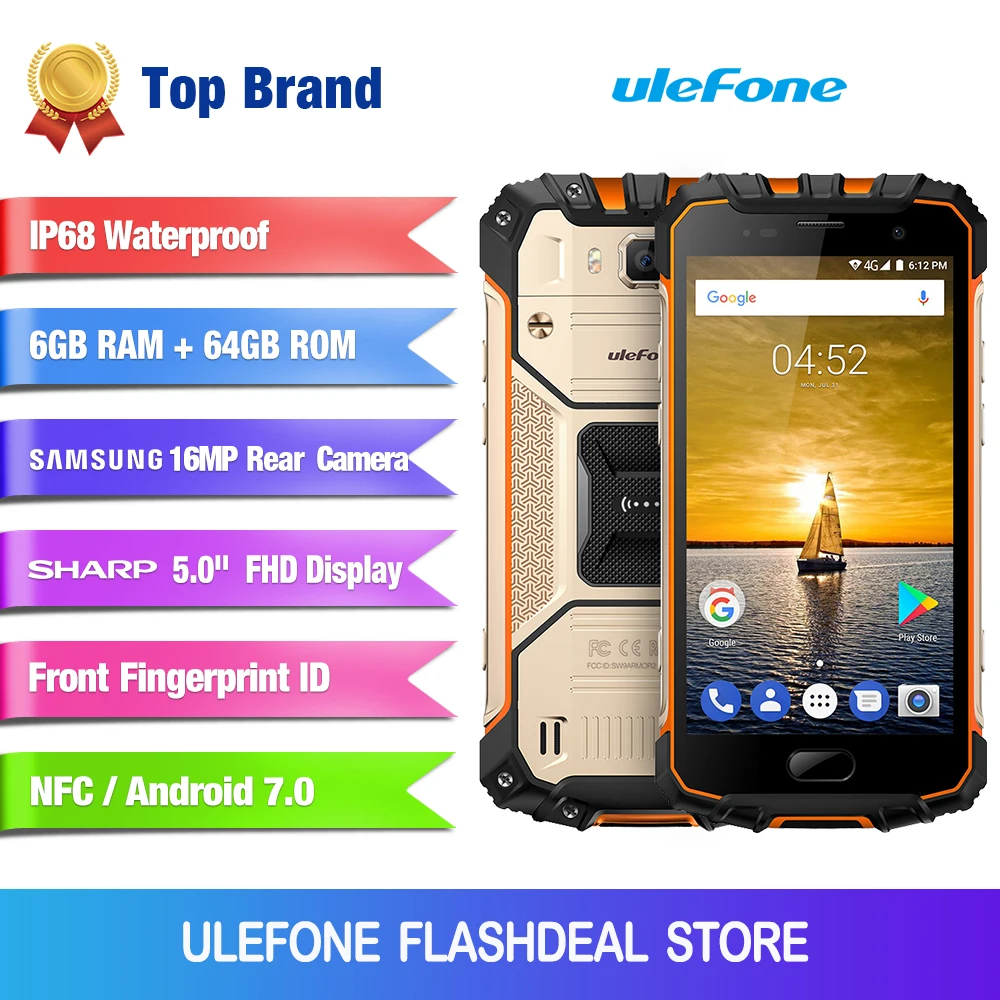 Comprar Ulefone IP68 2 Armadura À Prova D Água Telefone Móvel NFC 5.0 polegada FHD Octa Núcleo Android 7.0 gb RAM 64 6 MTK6757 gb ROM 16MP 4g Smartphones Baratas Online Preço.