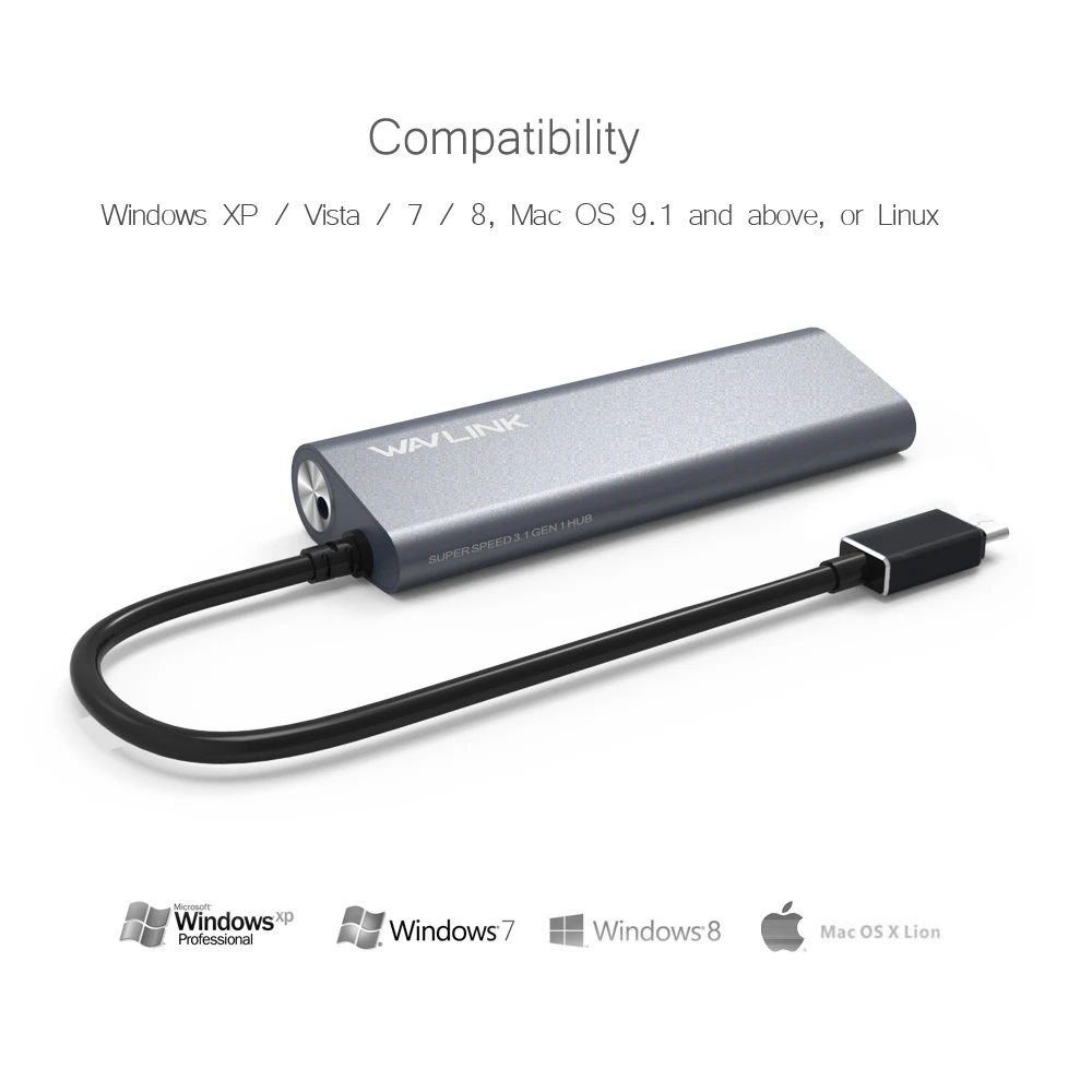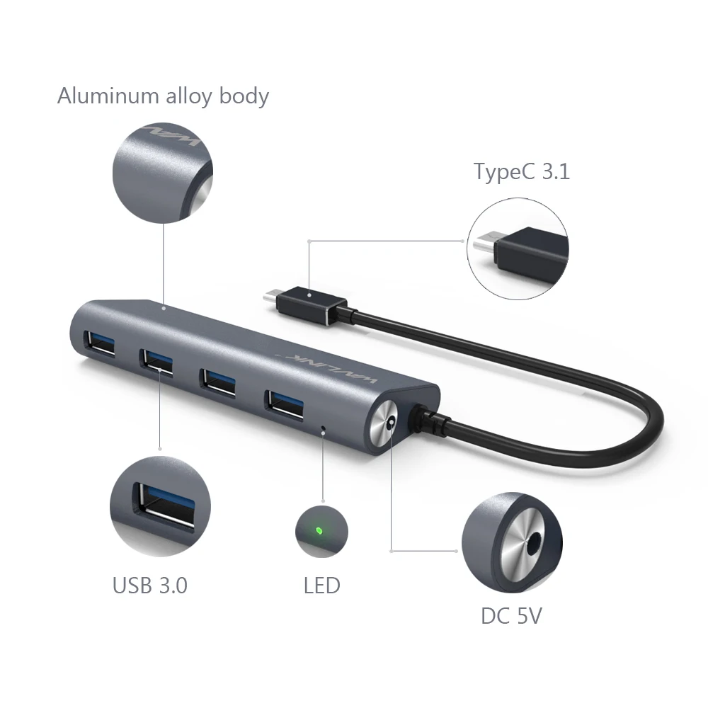 Comprar Wavlink Alumínio USB 3.1 Tipo C para 4 suporte porta USB 3.0 Hub USB de Alta Velocidade taxas de transferência de até 5 5gbps Para Laptop MacBook Mac Baratas Online Preço.