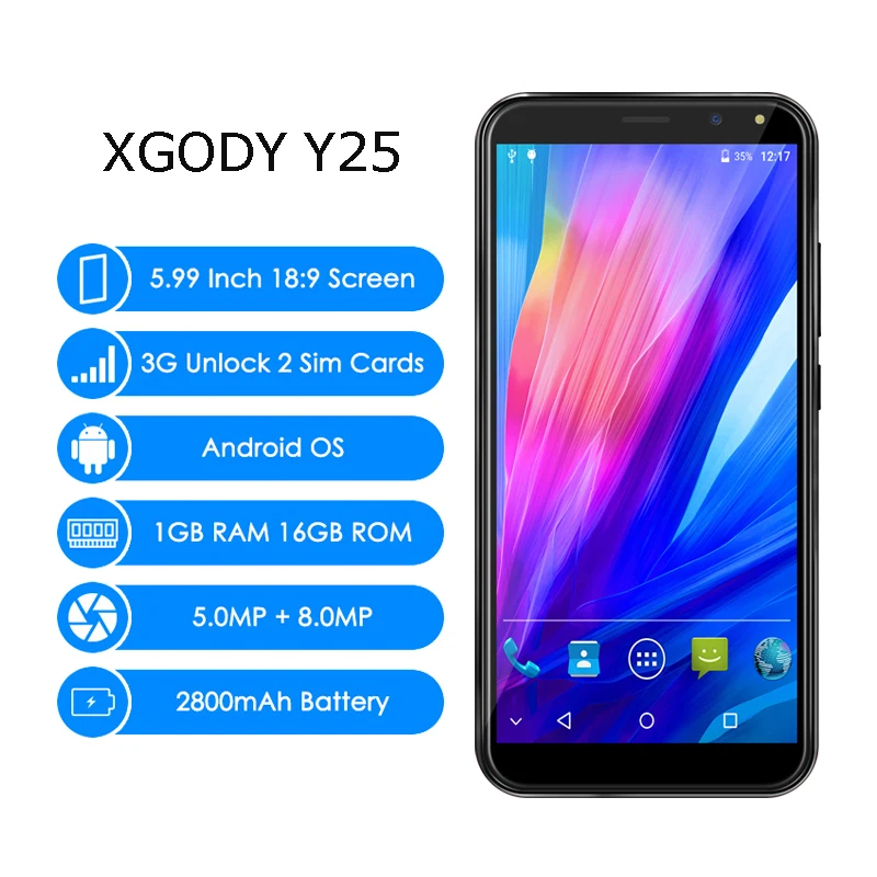 Comprar XGODY 3g Dual Sim Smartphone 5.99 gb + 16 Polegada 189 Quad Core 1 gb Inteligente Android 2800 mah tela cheia 8.0MP Telefone Móvel Celular Baratas Online Preço