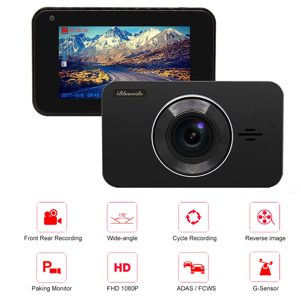 Comprar ADAS Bluavido Full HD 1296 p Câmera DVR Carro WDR Night Vision 3 Polegada Dual Lens Traço cam Gravador De Vídeo gravação ciclo Dashcam Baratas Online Preço.