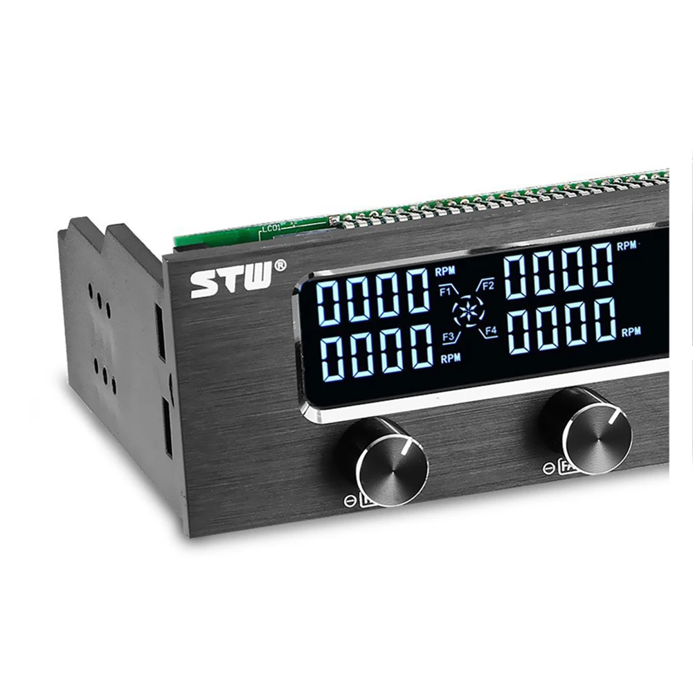 Comprar STW Pc 5.25 Polegada Compartimento da Unidade de Alumínio Escovado Completa 4 Canal Ventoinha PWM Controlador com Tela LCD Baratas Online Preço.