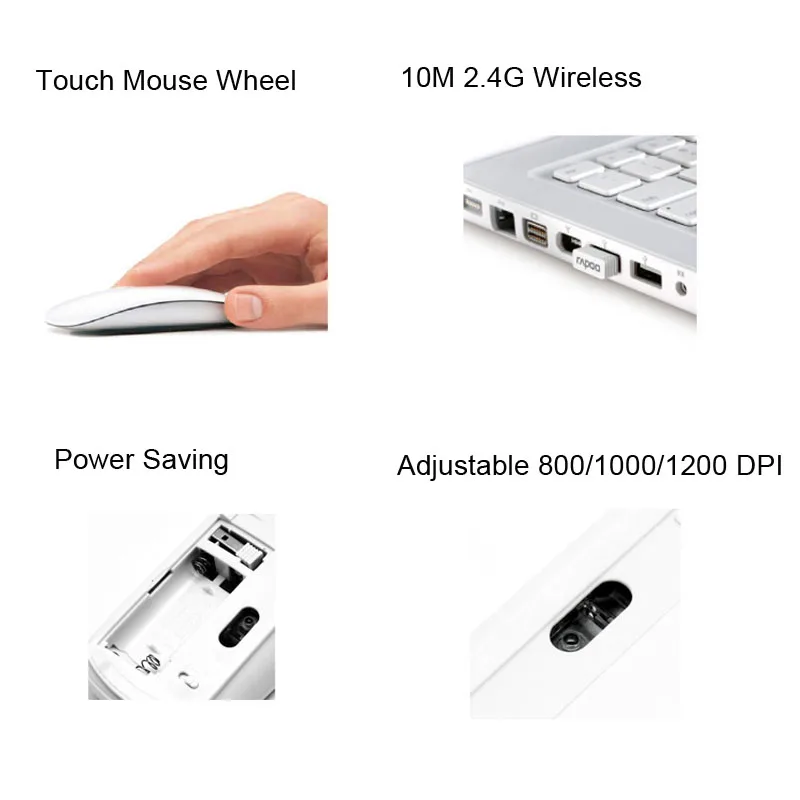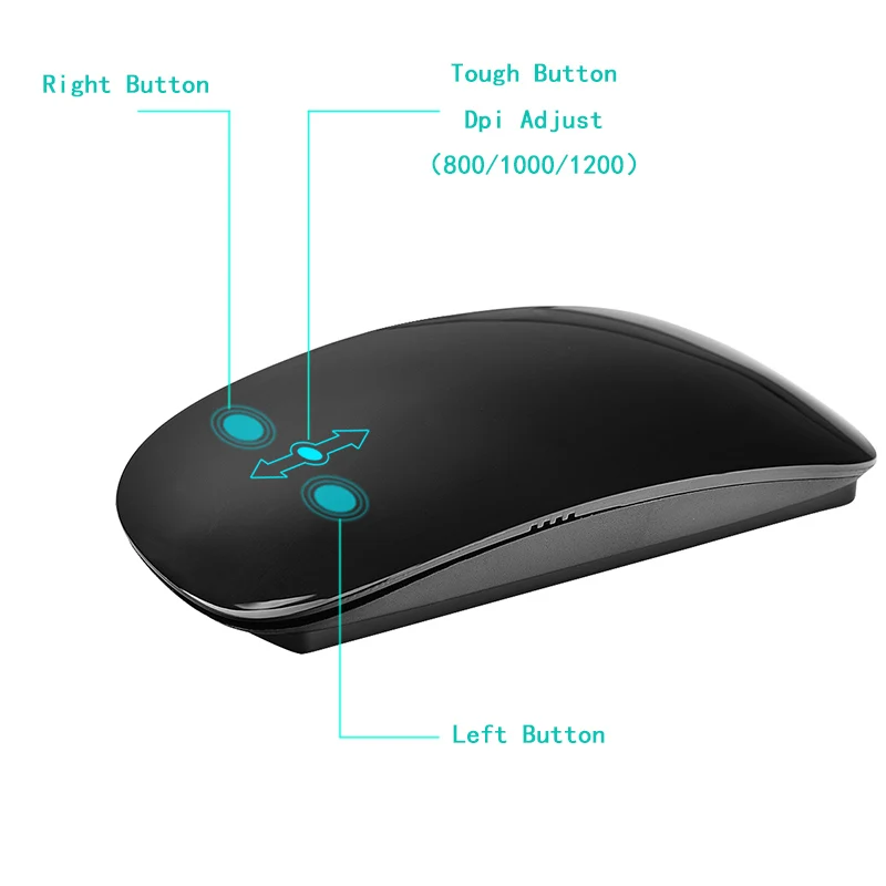 Comprar USB ergonômico Mouse Sem Fio Fino Toque Roda Camundongos Magia 2.4G 800 1000 1200 DPI Optical Mini Mause para A Apple Laptop PC Desktop Baratas Online Preço.